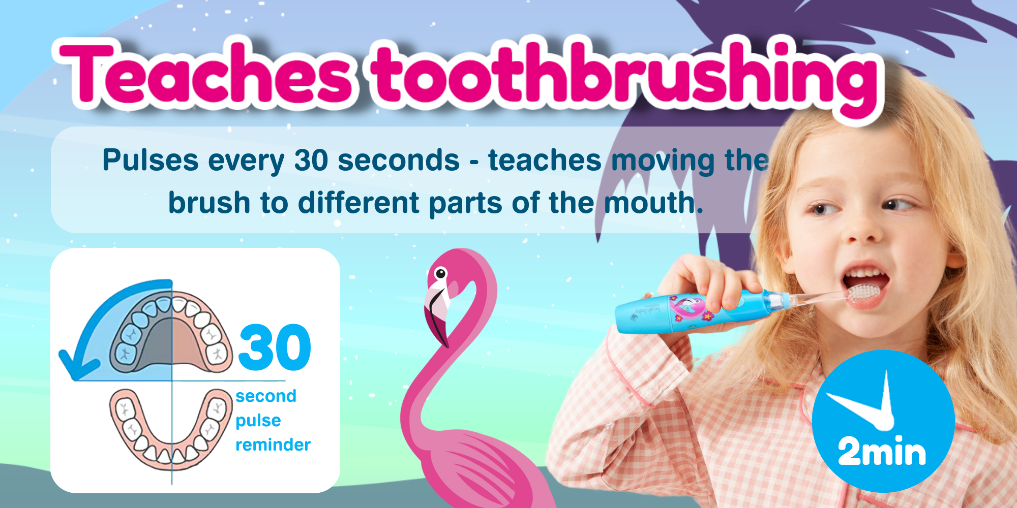 You could also opt for an electric toothbrush like the KidzSonic or brush-baby Go-Kidz toothbrush. They both have a two-minute timer and 30 second pulse, so you know exactly how long you need to brush for.