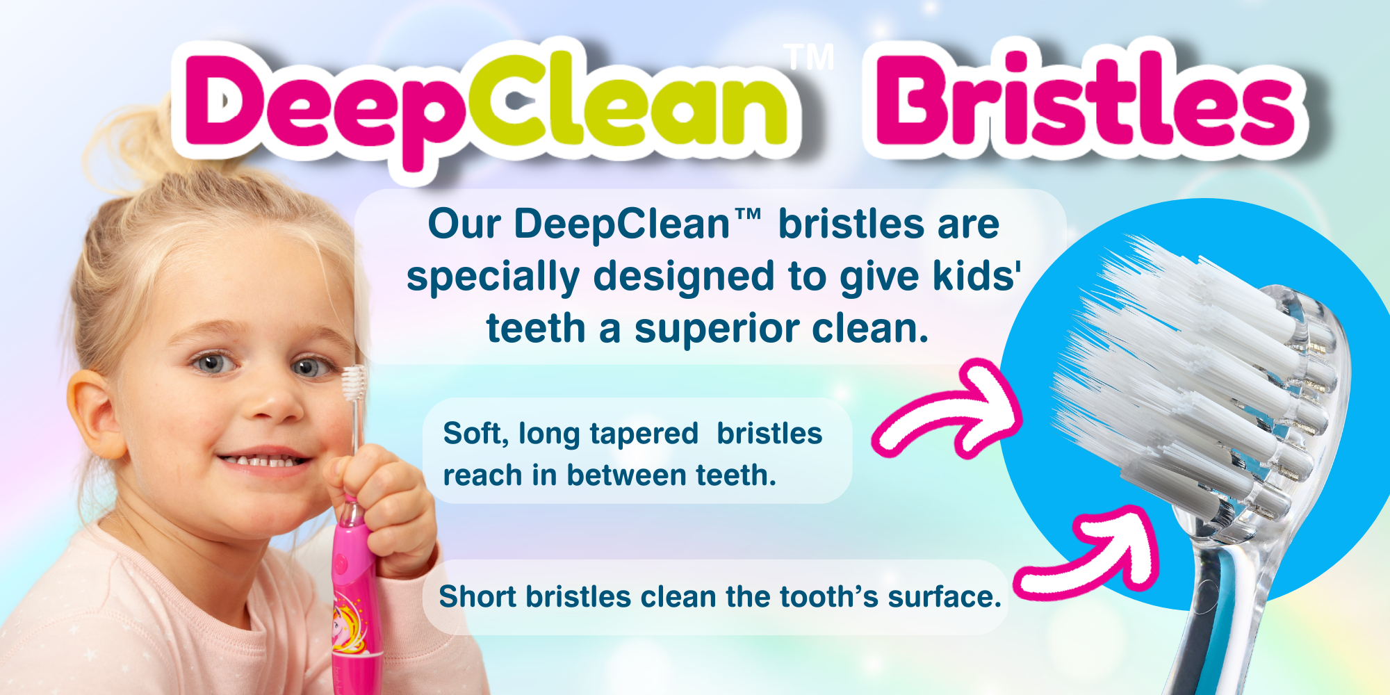There are lots of different toothbrushes on the market. The important thing to remember is that your child needs a toothbrush that will clean effectively deep down between their teeth.